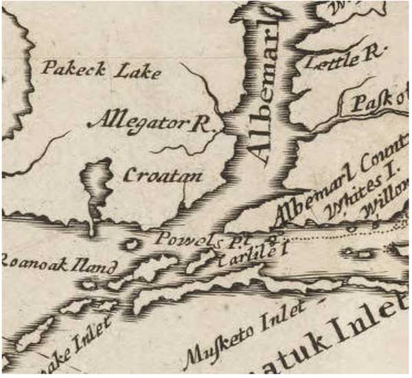 Less than twenty years after an Indian “emperor” guided Virginia traders to Old Fort Raleigh on Roanoke Island, the name “Croatan” appeared on numerous maps of the new Carolina colony.